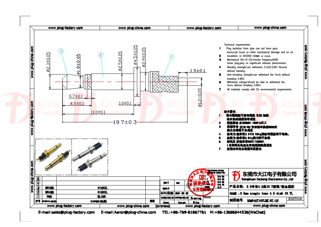 產品說明:耳機插頭-2.5單音4.5盤19.7L