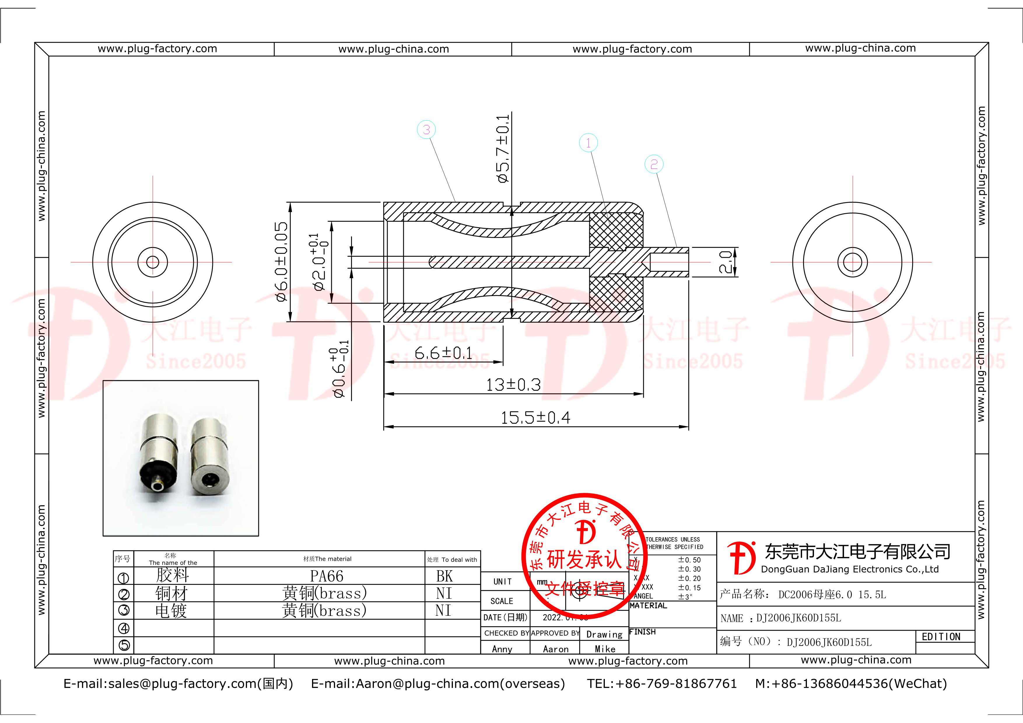 2006直徑6.0鍍鎳DC母頭