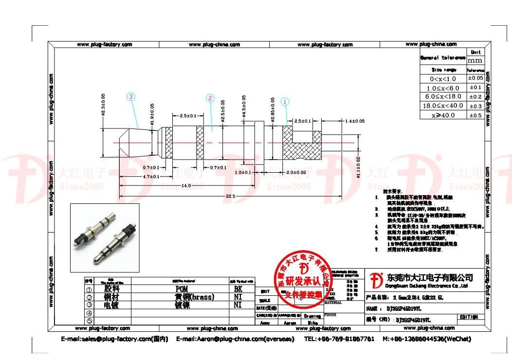 產品說明:耳機插頭-2.5立體4.5盤22.5L