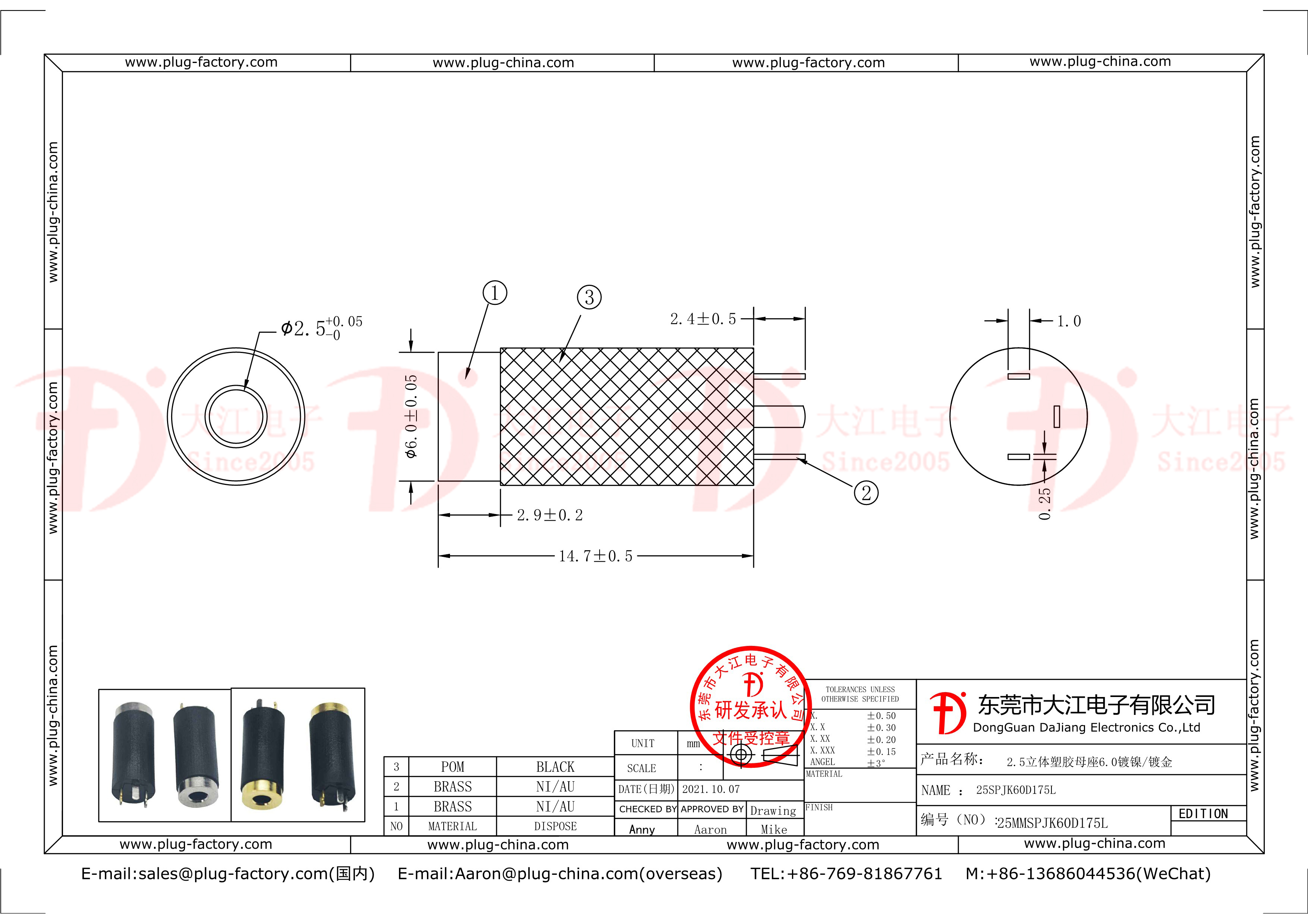 產品說明:2.5mm立體 6.0D 17.5L 塑膠 鍍鎳 耳機母座