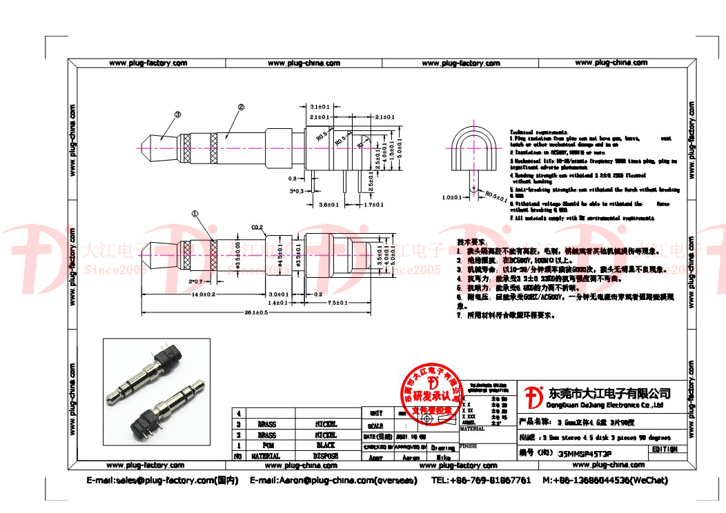 產(chǎn)品說明:PCB插頭-3.5mm立體4.5盤26.1L PCB