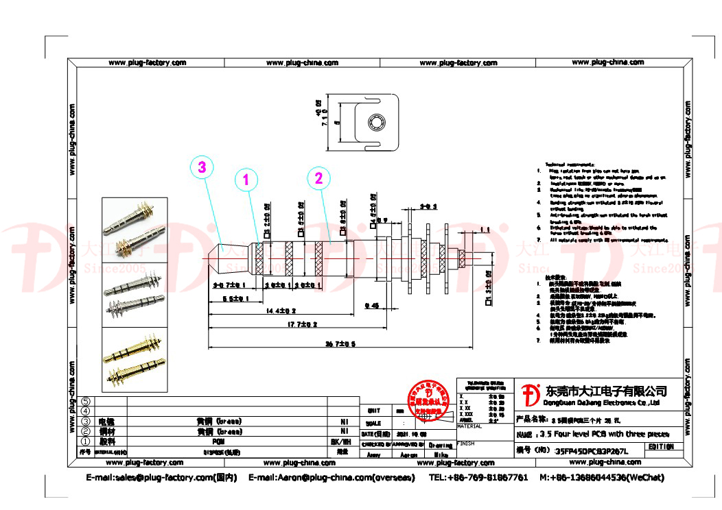 PCB插頭-3.5立體6.0膠盤 耳機插頭