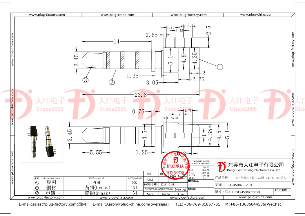 PCB插頭-3.5四級4.5盤0.75厚23.8L
