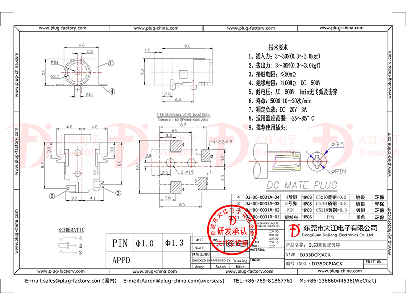 大江電子專業生產各類電子插頭及母座,主要產品有:DC插頭、耳機插頭、手機插頭、充電器插頭、音頻插頭、視頻插頭、USB插頭、插頭插座、DC頭、DC母座、DC插座、3.5耳機插頭、2.5耳機插針、耳機頭、RCA插頭、手機充電插頭、音叉插頭、大Din、MiNi Din、MiNi USB、USB插頭插座、電源插頭、轉換插頭及母座系列等,產品廣泛應用于手機、耳機、車載車充、數碼相機、玩具、游戲機及電腦等領域。