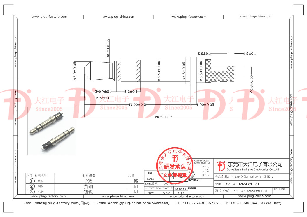 產品說明:耳機插頭-3.5立體4.5盤26L