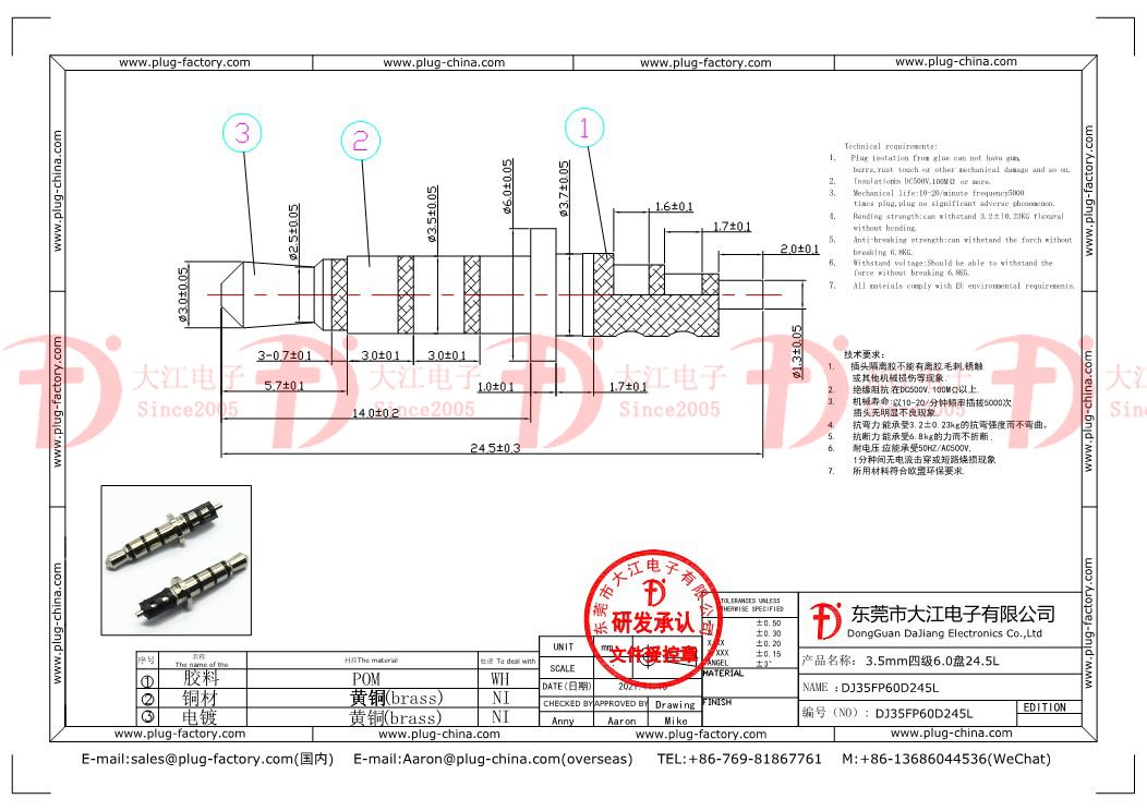 產(chǎn)品說(shuō)明:耳機(jī)插頭-3.5mm四級(jí)6.0盤(pán)24.5 鍍鎳