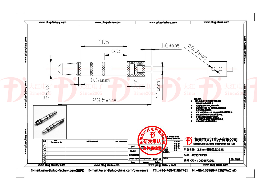 產(chǎn)品說明:3.5mm四極無盤23.5L 安全耳機(jī)插頭
