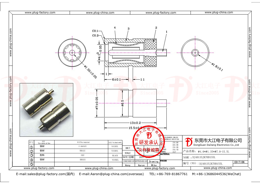 產品說明:電源插頭 40135直徑7.0鍍鎳