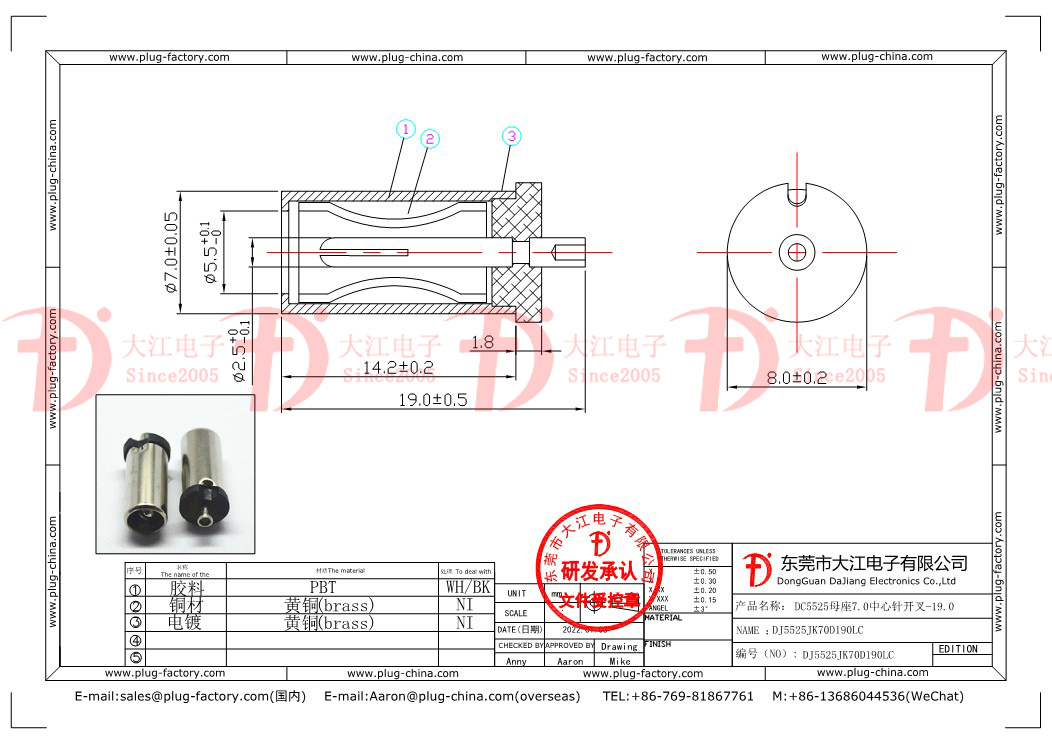 5525母座7.0針開叉 19.0L
