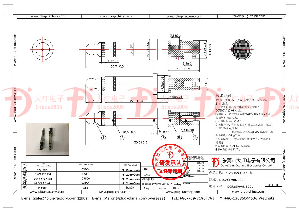 產品說明:麥克風插頭-5.2立體50L