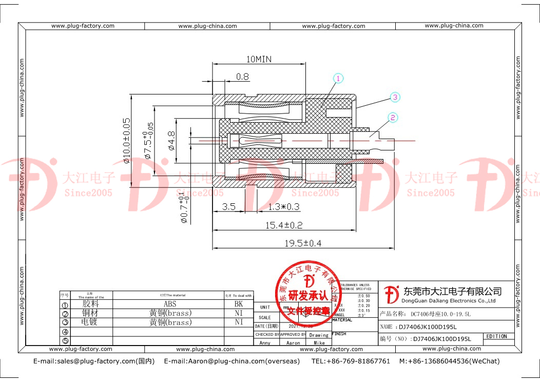 產品介紹:7406母座直徑10.0鍍鎳中心針
