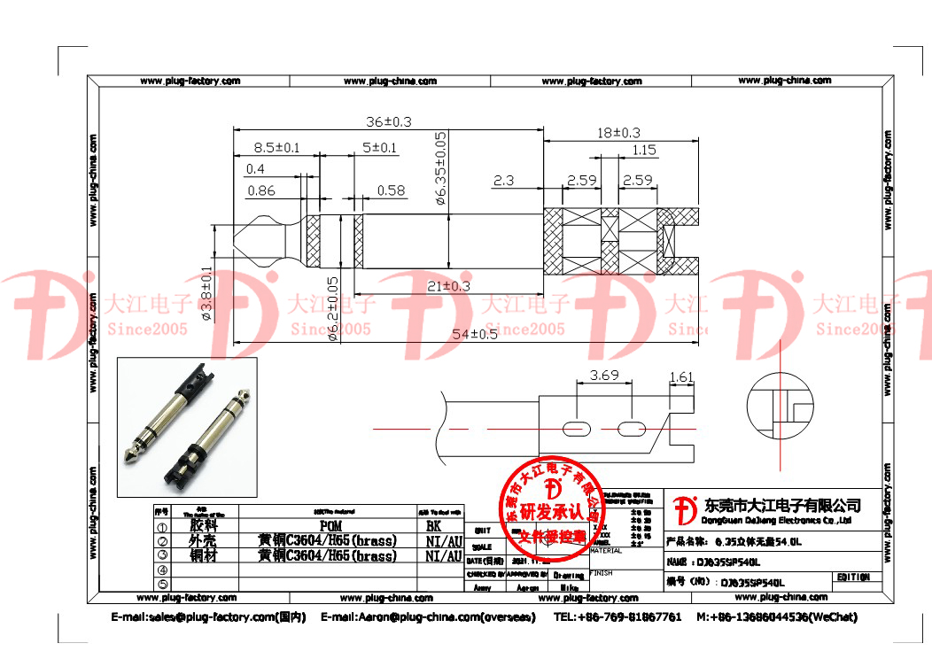 產(chǎn)品說(shuō)明:6.35mm立體 總長(zhǎng):54.0L 黑膠 鍍鎳 (鋅合金)音頻插頭,安全插頭