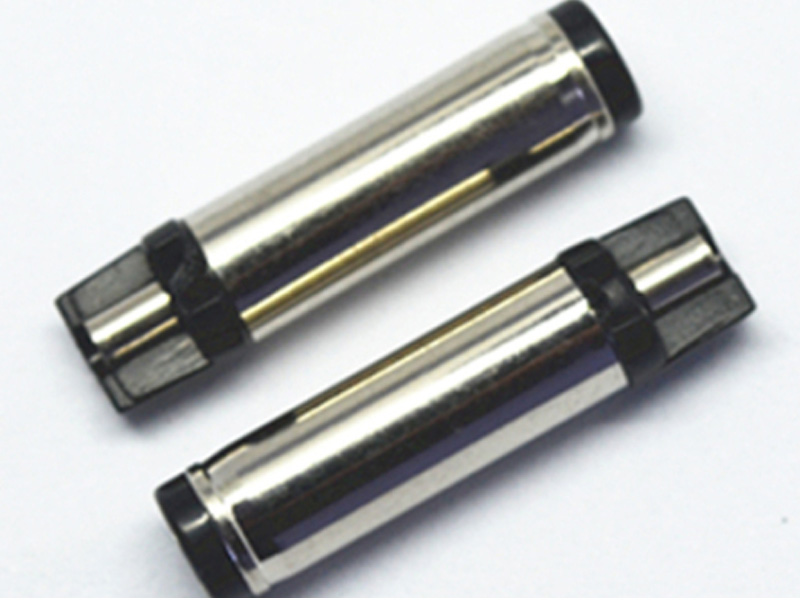 音叉DC頭的內壁上有兩片對應的金屬彈片在DC頭內壁上有兩個彈簧片用于與DC座金屬內針接觸連接,主要是插拔力可以按用戶需要用不同的彈簧片,目的是使插頭接觸性和穩固性都是比較好的.因為內部為彈簧片接觸所以對與之匹配的DC座內針要求比較尺寸稍微寬松一點,例如5.5*2.5音叉插頭可以與5.5*2.5相匹配的插座匹配也可以與5.5*2.1相匹配的插座匹配,但如果DC頭內壁上的兩個彈簧片彈力不足的情況下肯定會接觸不良。