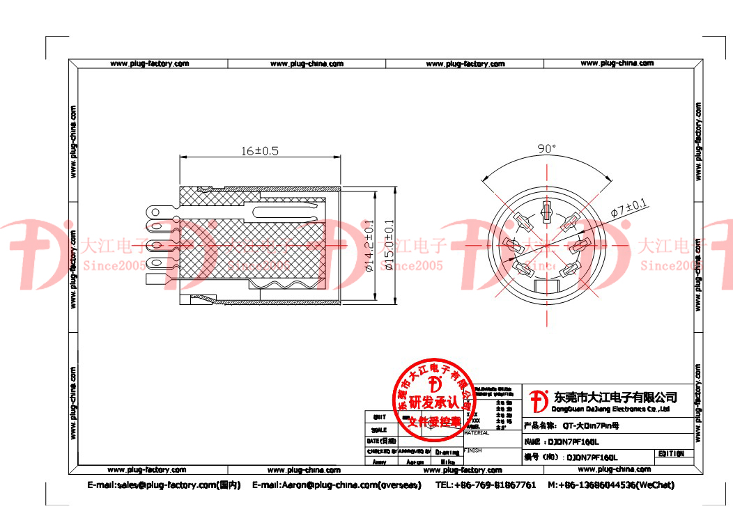 產品說明:大Din7P母 總長:16.0L 大Din插頭??