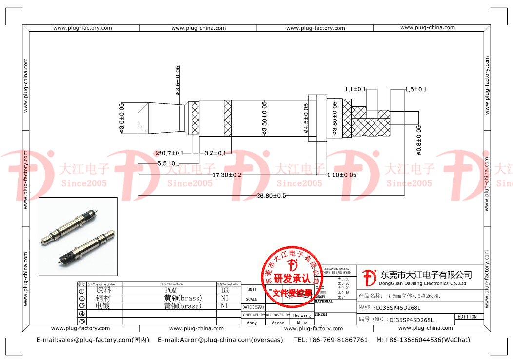 產品說明:耳機插頭-3.5立體4.5盤26.8L