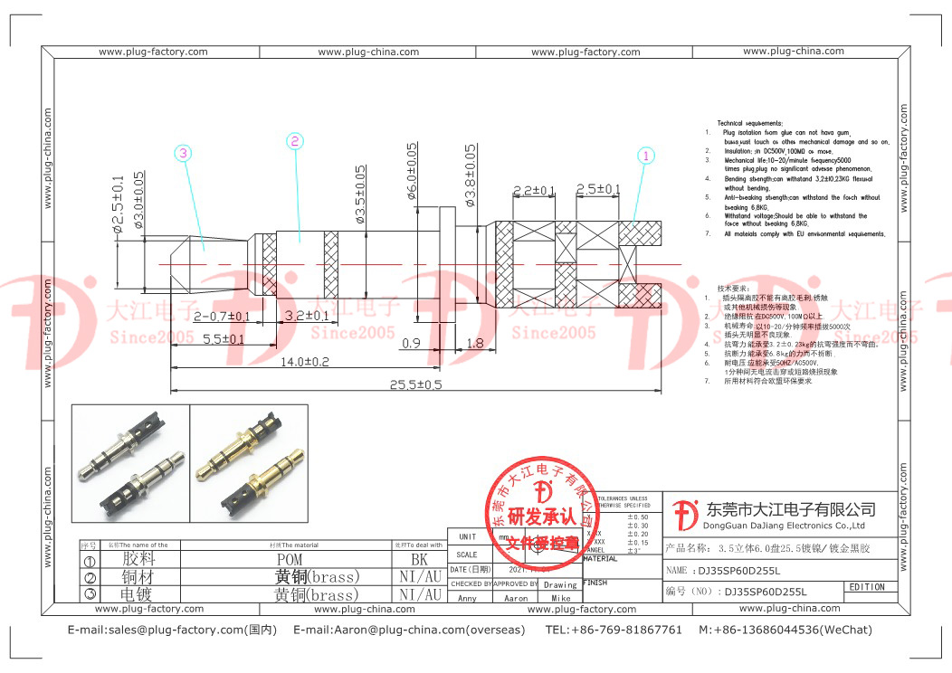 產品說明:耳機插頭-3.5立體6.0盤25.5L