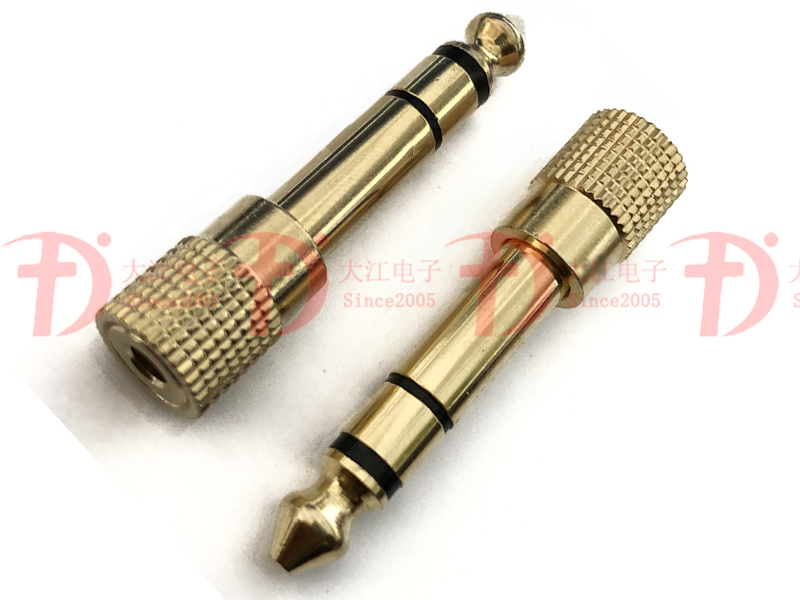 產品說明:麥克風插頭-6.3立體轉3.5 45l鍍金黑膠插頭