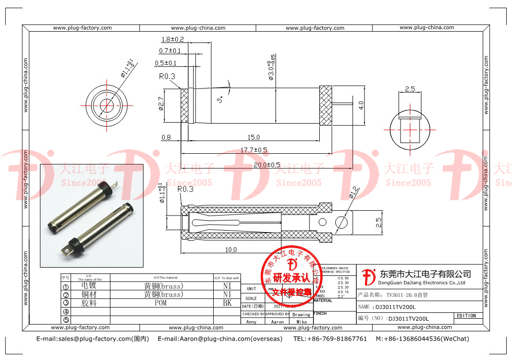 產品說明:3011TV20.5L 音叉插頭?