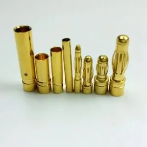 這種插頭的名字來(lái)自于它稍稍鼓起的外形。插入上面提到的多用插座正面的孔時(shí)非常方便,插入后也可以形成非常大的接觸面積。這種特性使得它被優(yōu)先使用在大功率輸出的器材中,用以連接音箱和接收機(jī)/放大器。有時(shí)候也可以看到被分為兩組的香蕉插頭,稱作“雙香蕉插”,不過(guò)并不是在所有器材(特別是音箱)上都能夠使用。 一戰(zhàn)以后起源于德國(guó),最初的形態(tài)由一個(gè)底座+一個(gè)鐵釘+一個(gè)彈片組裝而成,由于其最初的彈片是由金屬片沖壓成四片葉狀,在其組裝進(jìn)鐵釘以后倒置就和一個(gè)剝皮成四片的香蕉一樣故取名“香蕉插頭”。