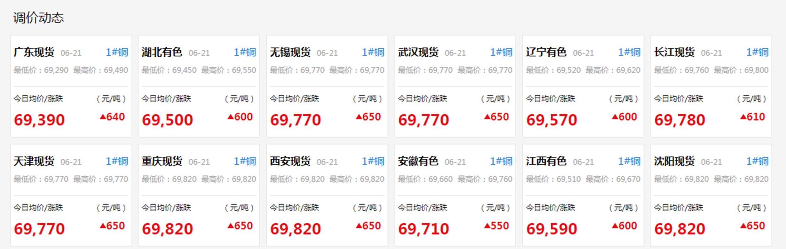 各地方的銅的調價動態,有必要的需提前備貨啦!