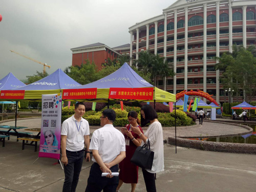 大江電子和廣州華立學院全面展開校企合作,全面引進人才培訓計劃,全面召開座談會,到會企業有華為,永輝,大江,長城寬帶,創維,中國平安,中國人壽多家知名企業,達成多項戰略全作計劃,訂單班,冠名班,大江電子江總代表東莞工貿會出席本次活動,潘院長,陳處長,劉部長親切接見,友好合影留念。