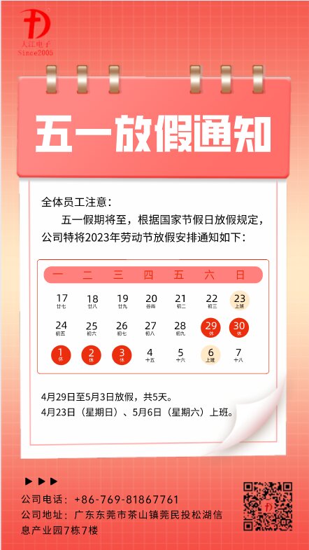東莞市大江電子五一放假通知?。?/h1>